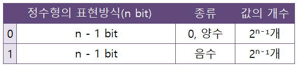 가장 왼쪽의 1bit는 부호를 결정하며,