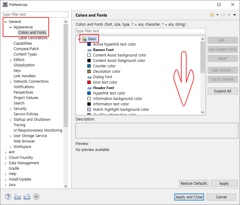 eclipse에서 Text Font 설정 방법은 다음과 같다.